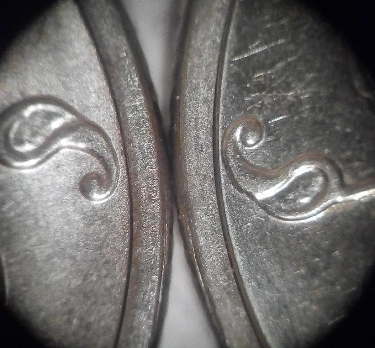 мерять надо по центральным элементам изображения или вживую циркулем (что не точно тк не дает процентное соотношение разницы) или на правильно сделаном совместном скане. Допустим на 2 рублях после 16го года можно мерять так, как показано на картинке во вложении. И на второй картинке гипертрофировано показано то, что вы делаете положив одну монету на другую (помните про перспективу).
