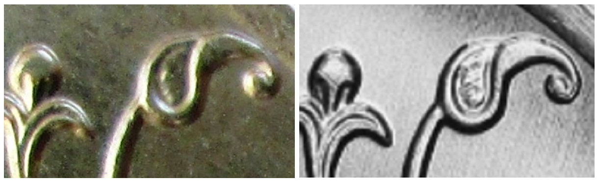 Дмитрий, думаю, что необходимо переснять все т.н. "интимные места" этих монет, по которым можно будет определиться, к каким шт. они больше подходят или, действительно это издержки производства. Может быть кому-то из отцов-нумизматов направить на изучение и вердикт. А так необычный брачок, в глаза бросается. Да, еще, на моих, этот разрыв более четче виден, но если сравнивать со шт.3.3, немного он уже. Вместе с тем видно как верхний листик доходит до канта, проходит по нему - появляется небольшой разрыв, который доходит до нижнего листика. С уважением.