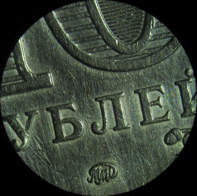 Еще один момент. Обрати внимание на место, где вторая М переходит в Д. У шт. А там четкая прорезь (посмотри свои монеты), а у всех нечастых - этой прорези нет. У нижнего знака ее тоже нет. У шт. А верхние концы первой буквы М как бы квадратные, немного зализанные вправо. А у нечастых - буква М выглядит как два витка синусоиды. У всех нечастых длинная прорезь (сверху) между двумя половинами первой буквы М (на фото не очень видно), а у шт. А - ее вообще нет.