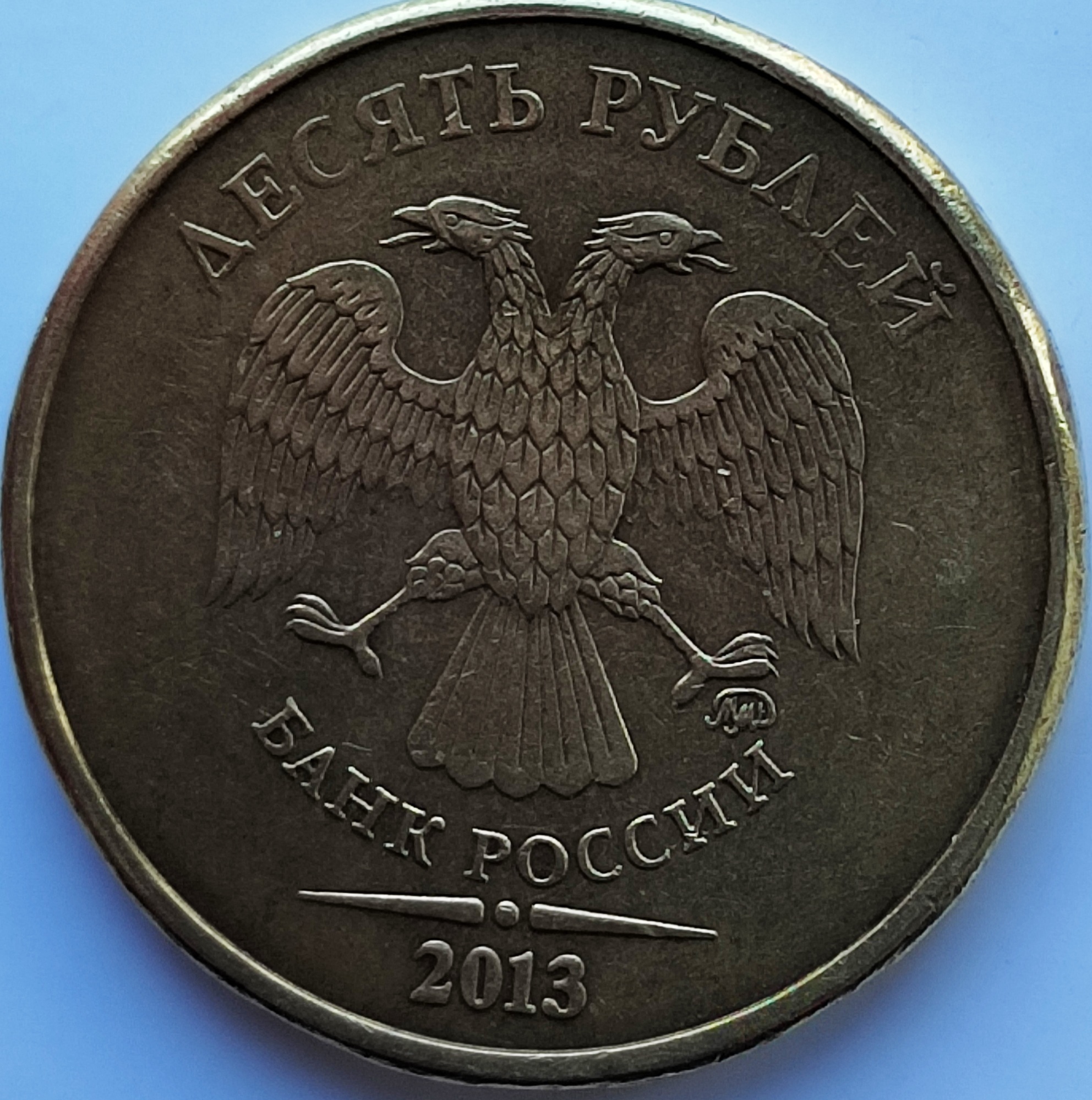 10 рублей 2013 года ммд. Ровная верхняя планка на знаке мд