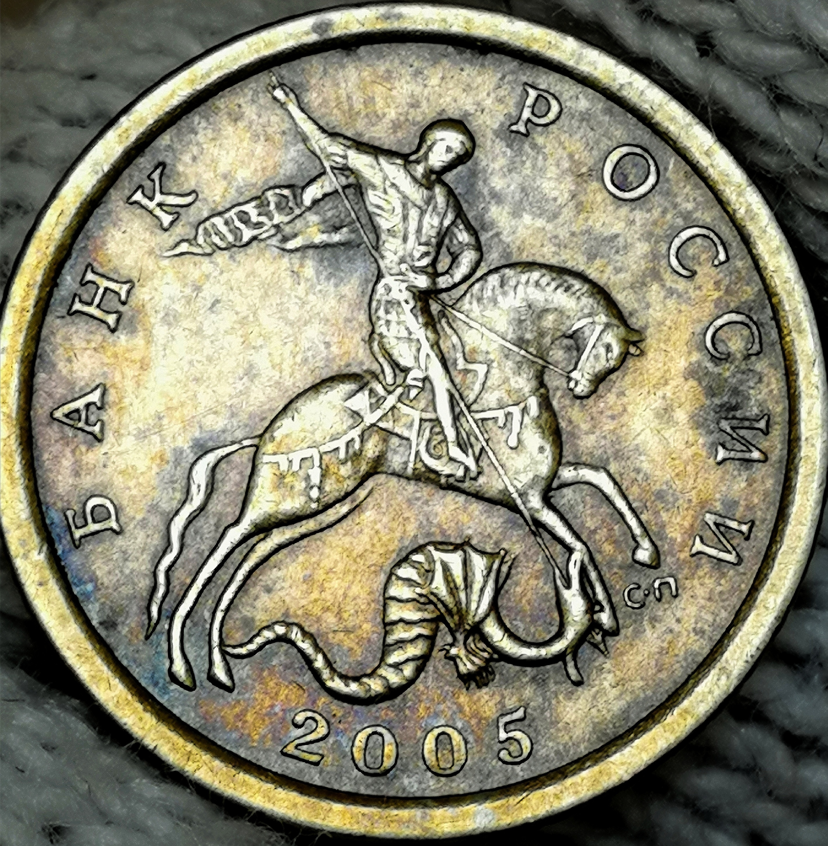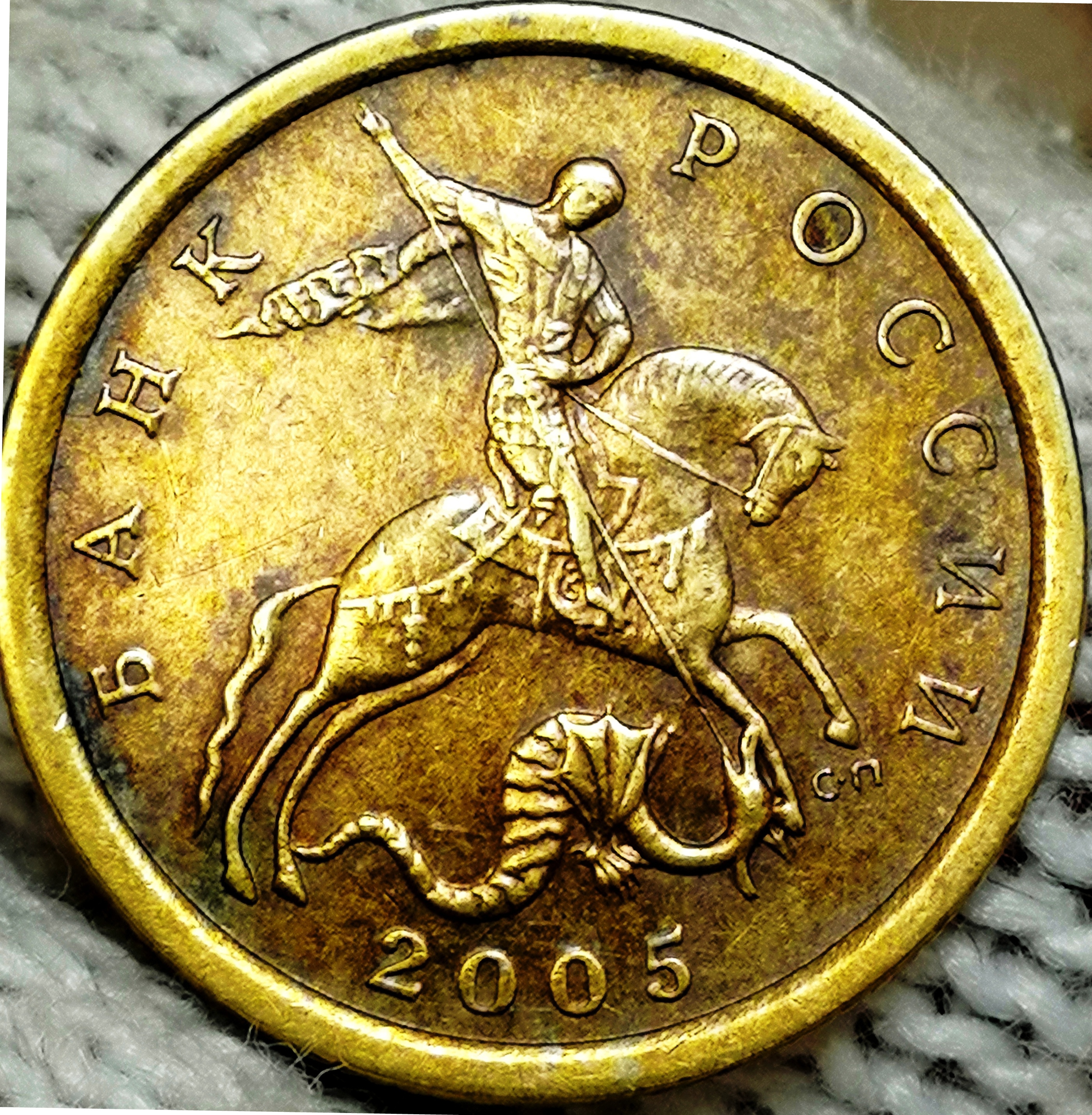 10 копеек 2005с-п. один повод м/у головой и шеей коня