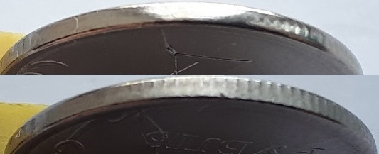 На 2022 расколы практически копируют друг друга. Гурт с одной стороны гладкий. Получается 2 штемпеля оказались браковаными и как часто такой брак встречается?