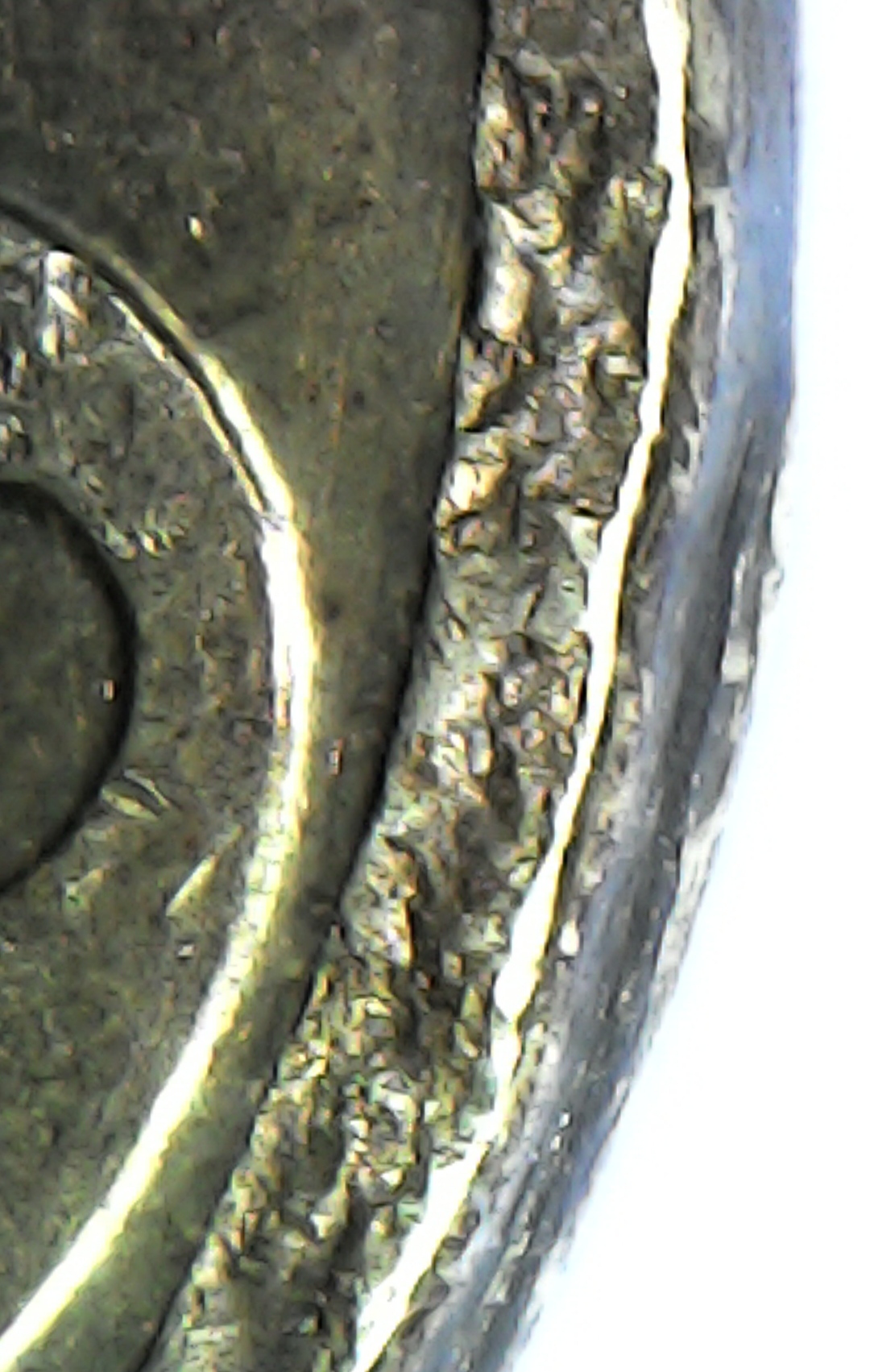 Что это за брак? - кант не придавлен, в некоторых местах канта есть шлифовка, совпадает с направлением шлифовки на поле. Интересно что это именно на варианте с гальванопорытием, где кроме раскола других браков не видно.