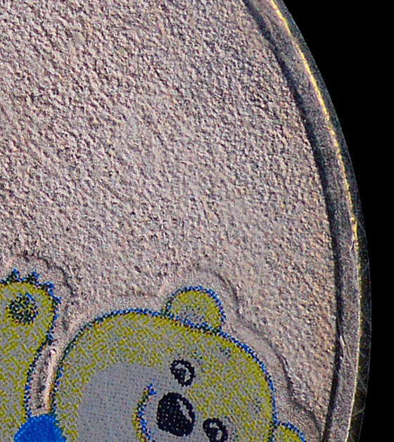 Вот гифка с микроскопа, всю монету показать не получается по тем же причинам, но такая же разница просматривается по всему полю монеты.
