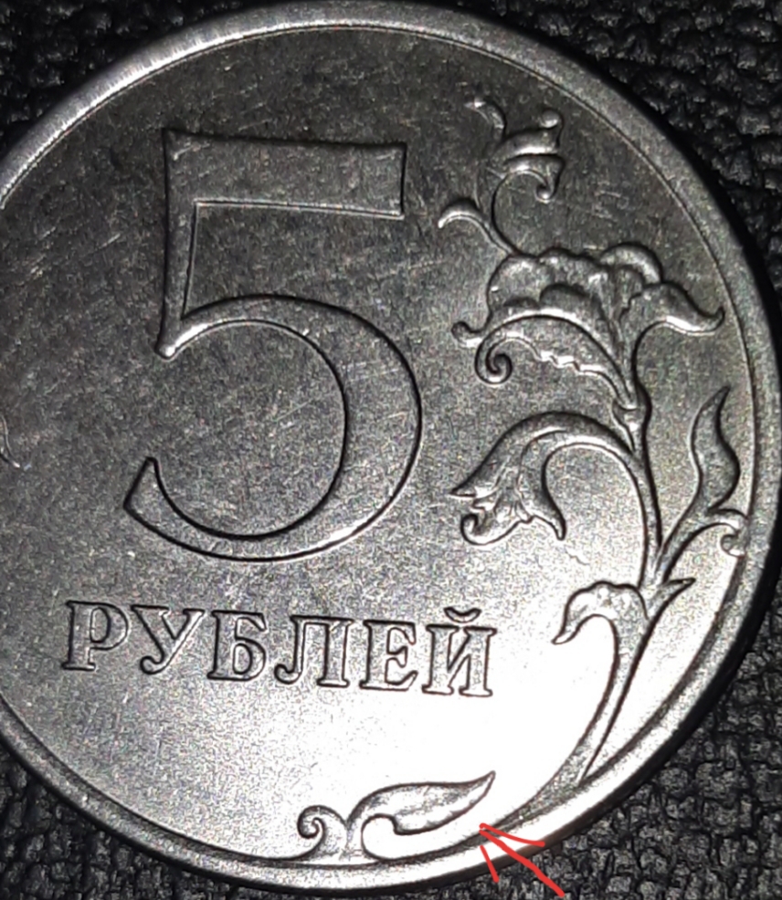 На одной монете нижний листок волнистый (показоно стрелкой), на другой монете листок прямой (без признаков волн). Имеется в наличии одна монета с волнистым листом, и две монеты с прямым листом. Вторая монета не описана ни в одном каталоге. Что это, новый разновид или брак?