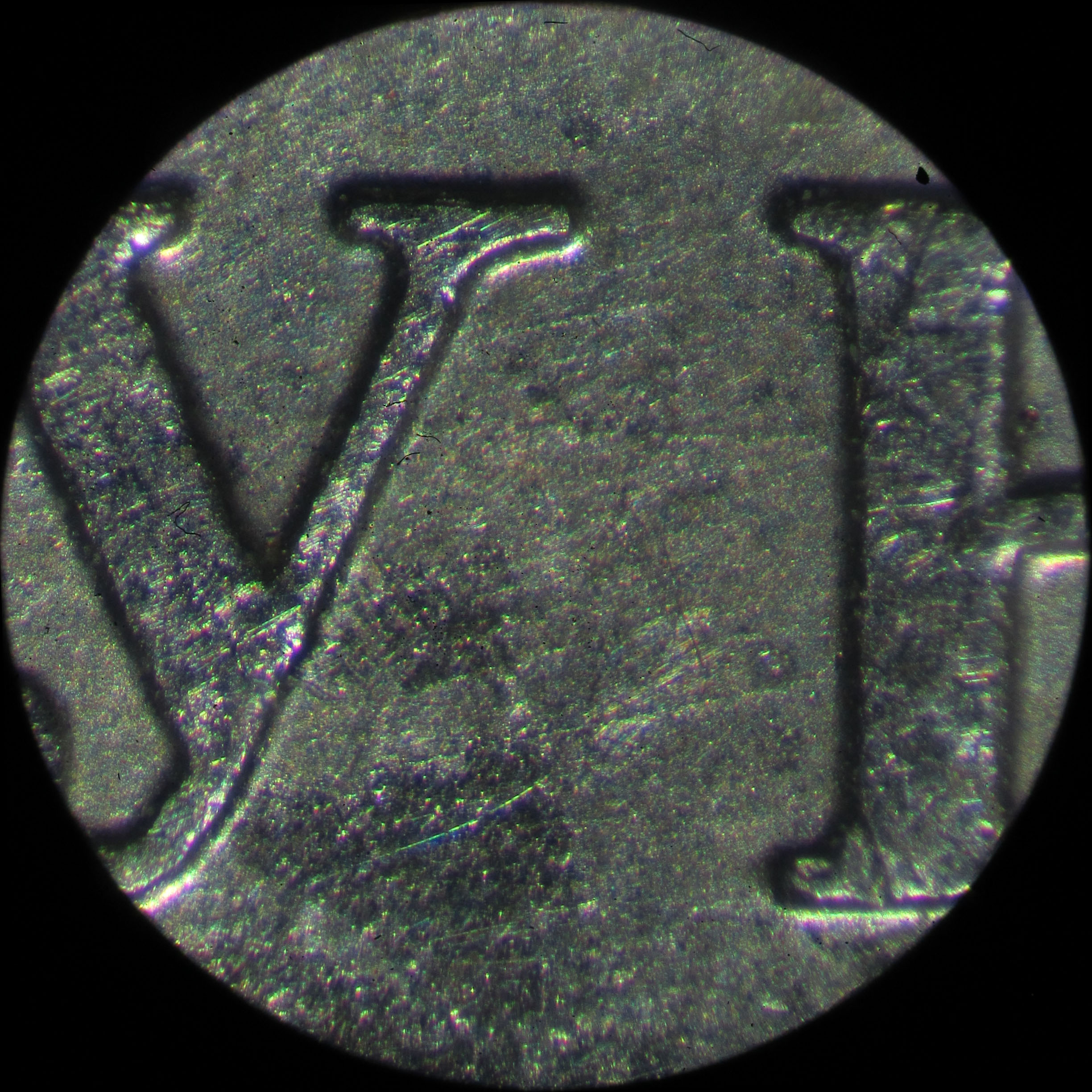 На моей монете шлифовка тоже какая-то невнятная, вроде царапки есть, но не понять, это шлифовка или, собственно, царапины из оборота. Но сошлифованности букв нет, да и с такой разницей в размерах штемпель не может быть одинаковым.