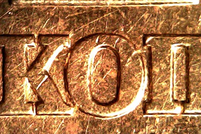 . Сравните сохранившийся след шлифовки от пром. штемпеля под верхним носиком первой буквы К.