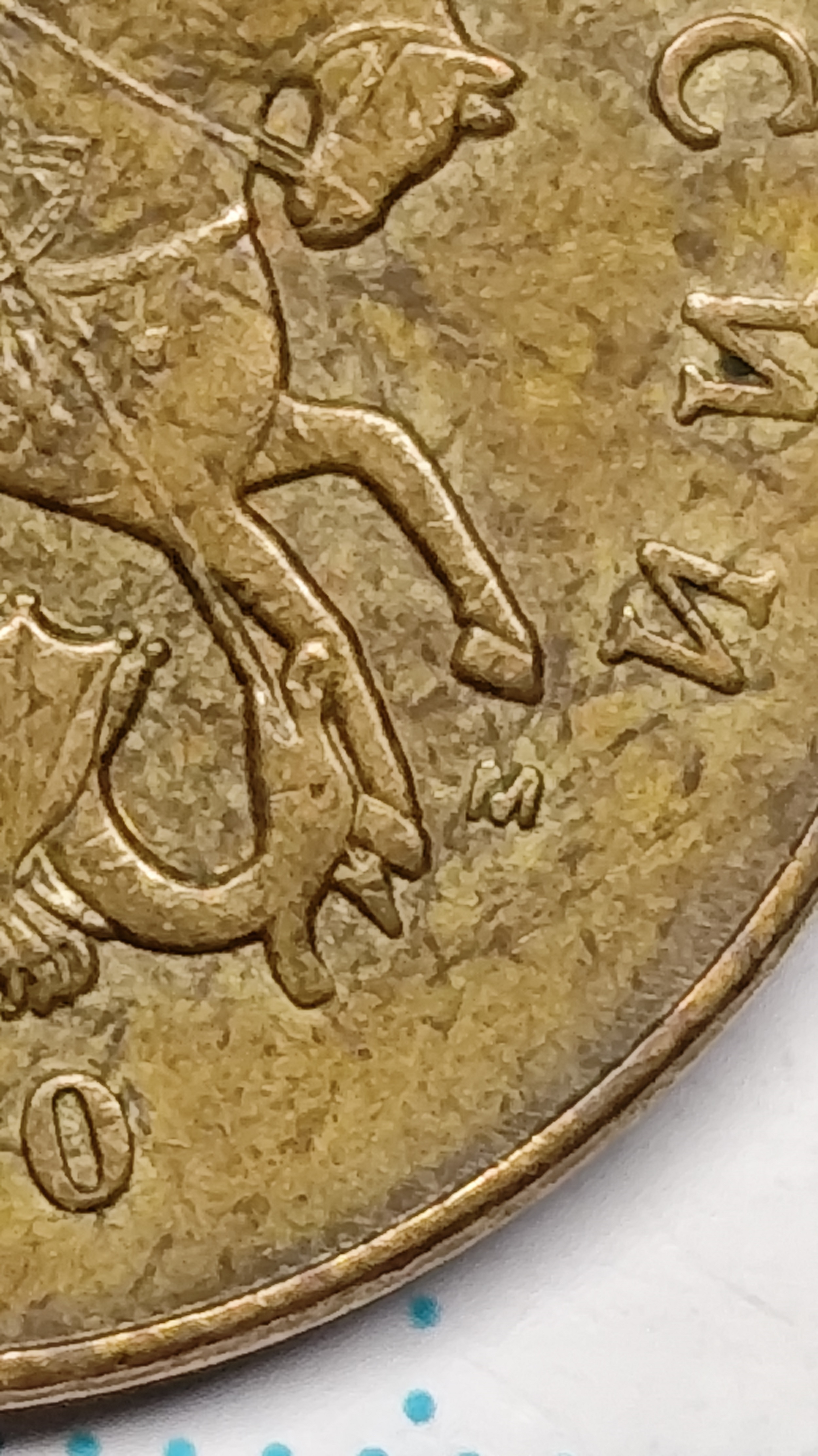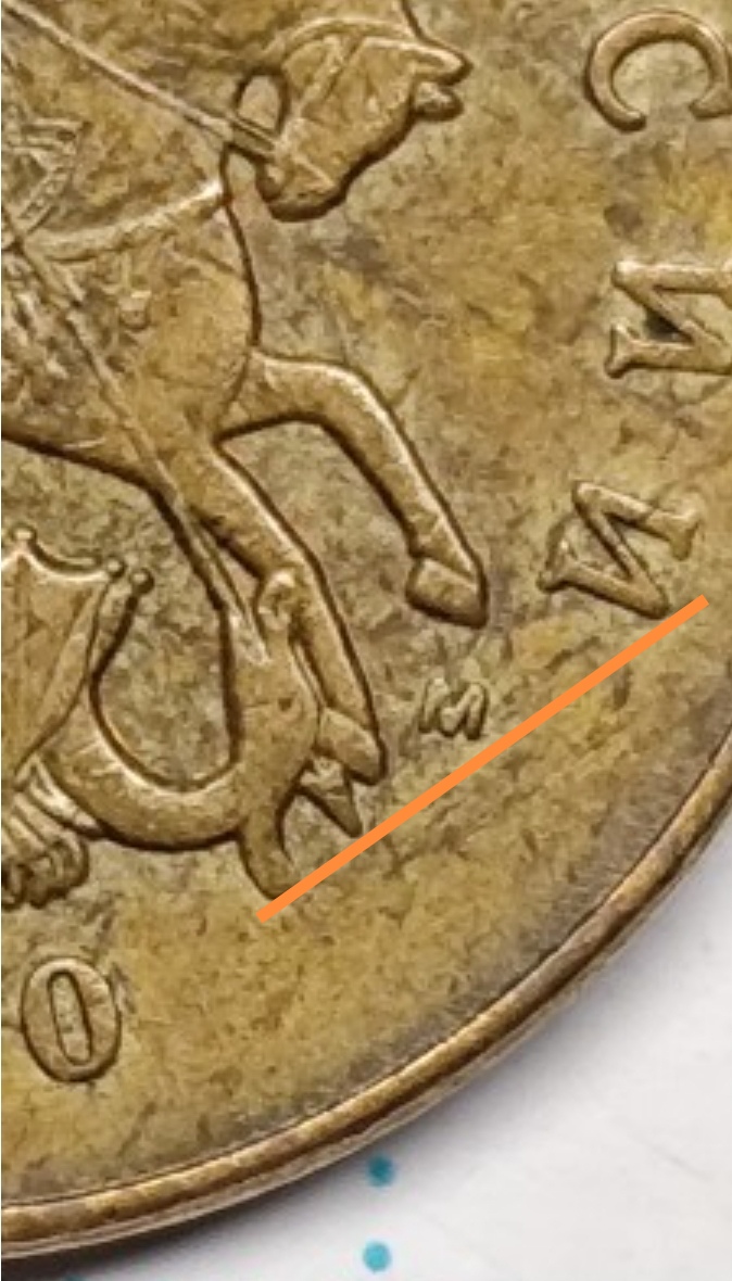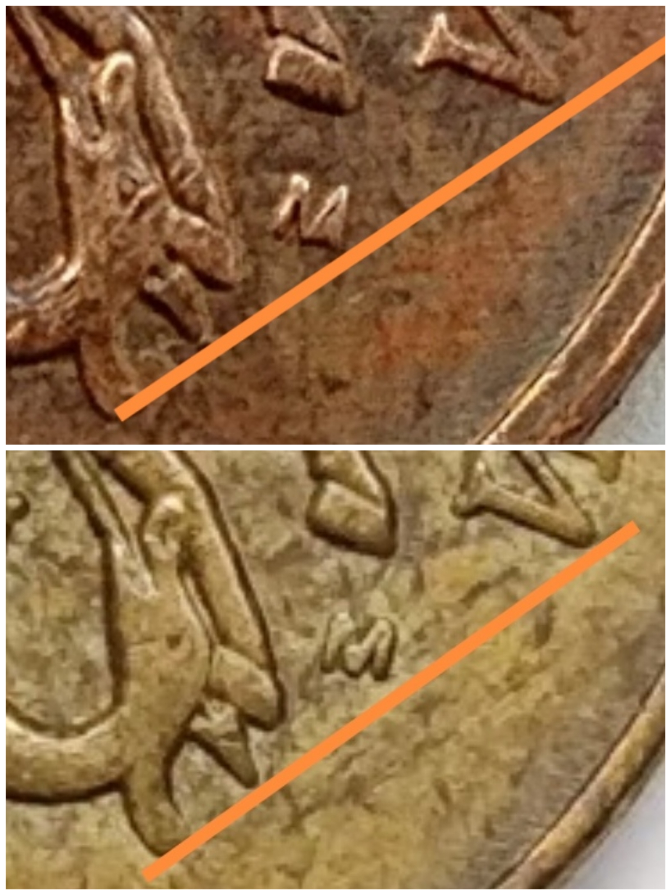 У левой монеты буква М раздолбана мелёхи., из-за этого так и видится.