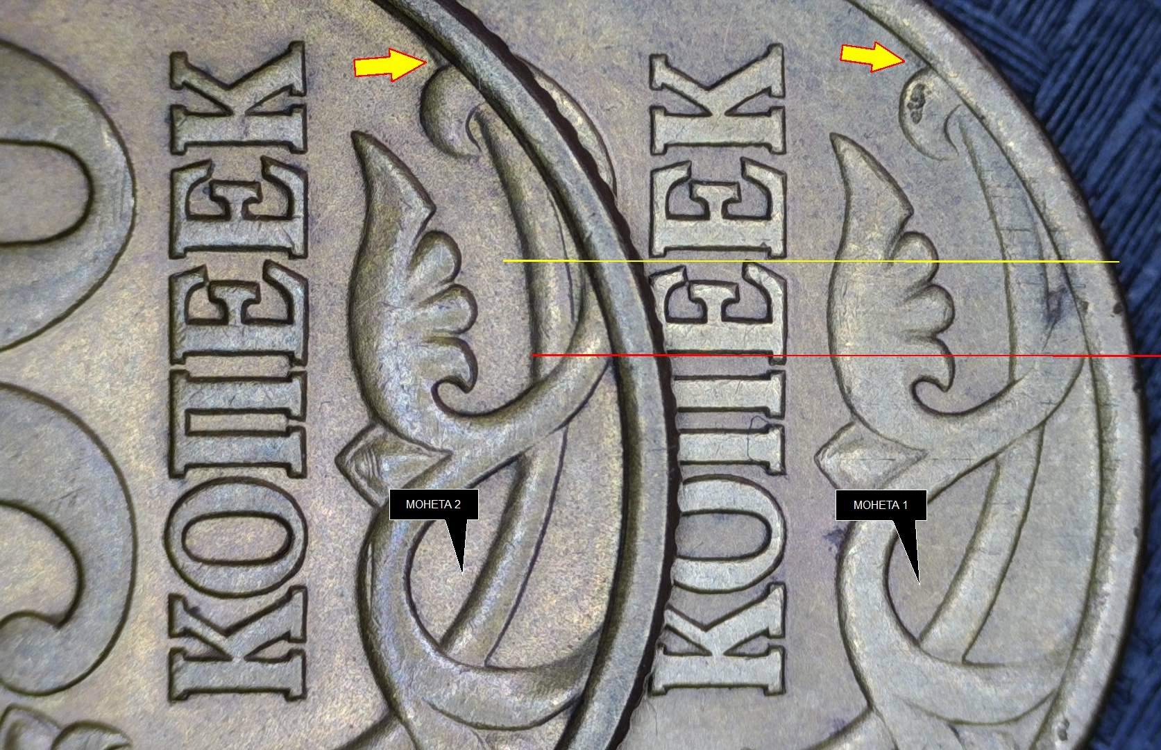 Можно по указанным отличиям, на реверсе, между монетами 1 и 2 предположить что на монете 2 не шт.1.1?