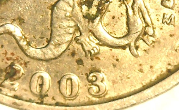 Сегодня мне попалась монета 5 копеек 2003м с интересным обрамлением цифр даты выпуска. Кто подскажет, как такое могло случиться в процессе производства данной монеты. Жду Ваших разьяснений. Спасибо, С Уважением
