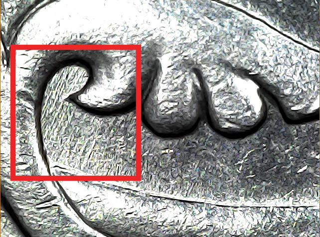 На реверсе шлифовка однозначно совпадает со шт.п.№1. На аверсе есть некоторые линии точно совпадающие со шт.п.№2, а некоторые линии отсутствуют.