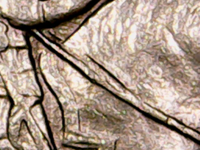 Если рассмотреть имеющиеся изображения при увеличении, то заметно, что края выпуклости плавно перетекают в поле, но в то же время ее верх имеет четкие границы, правый кончик немного волнистый и залез на повод. Скорее всего, это след от микростружки в масле.