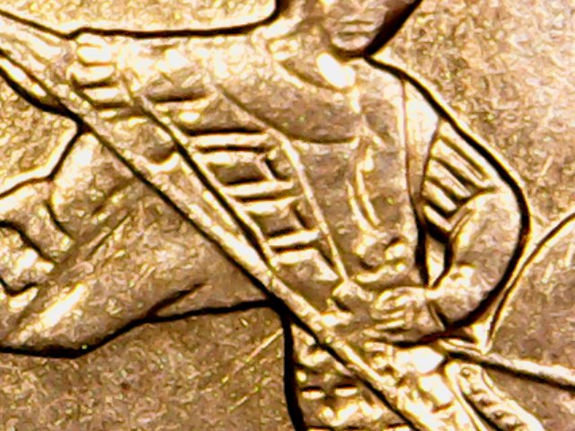 Чтобы не заморачиваться с мелкими номиналами можно посмотреть на модели 5 рублей 2016,2017,2018 года. Там очень хорошо видно изменения в исполнении всадника, коня и змея. Почти без лупы :D