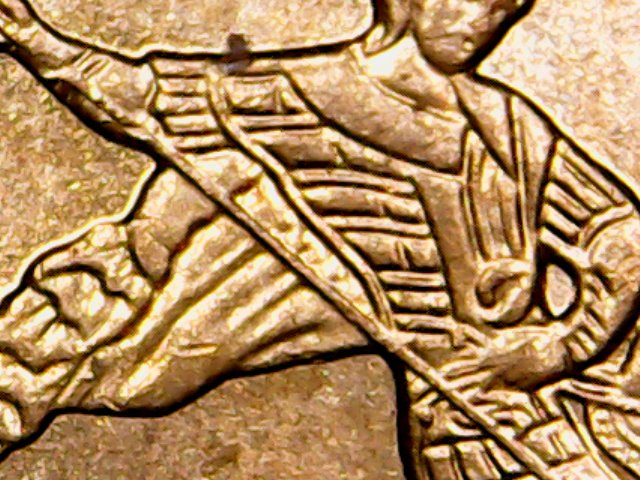 Существуют разновидности , где определяющим фактором является не расположение монограммы, а размер изображения, размер поля монеты или детали рисунка. Меня больше заинтересовала тема отличий по изображению. Для примера - 2001СП разница в складках на плаще.