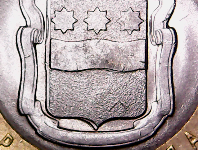 Попытался посмотреть монету в плоскости. Мне кажется, что рельеф на вставке более выпуклый чем на кольце. Может монета повернулась под повторный удар ? И за счёт более выпуклой части на вставке отпечаталась только внутренняя часть.