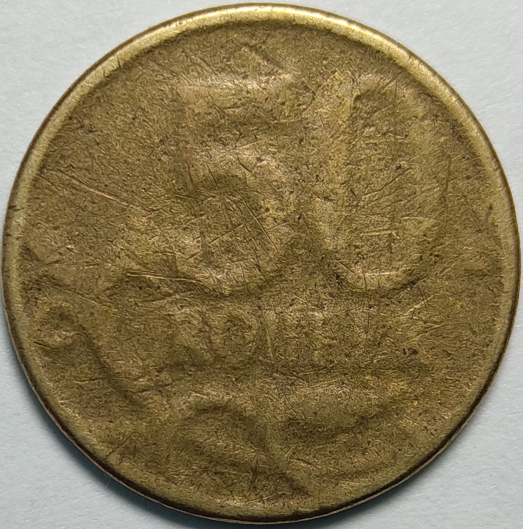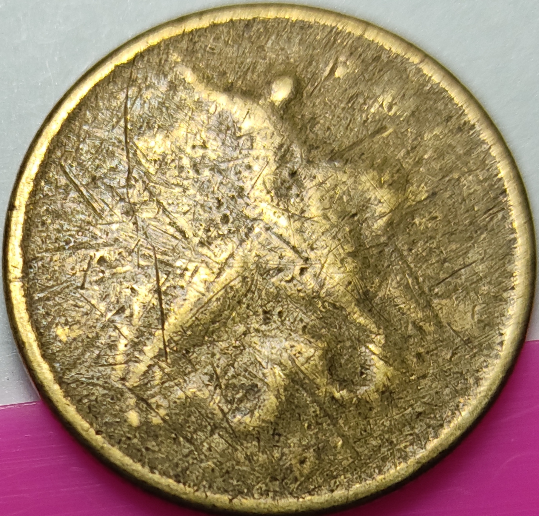 Добрый день. Попалась вот такая монета, очень тонкая в сравнении с любой 50 копеек латунной монетой.