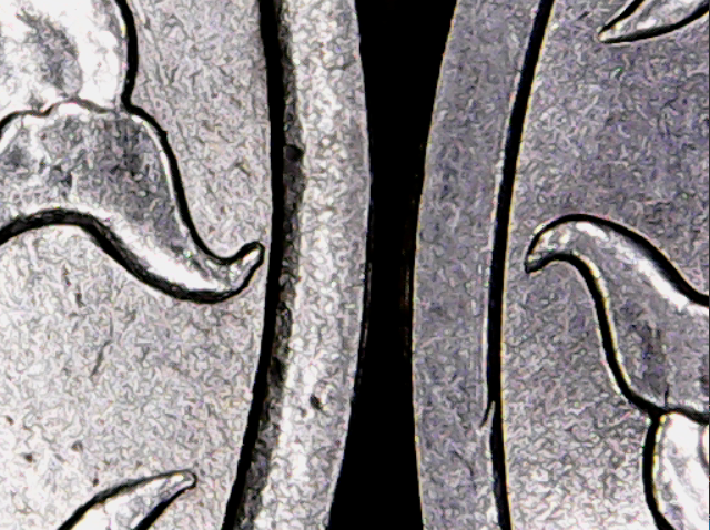 Попались 5 рублей 2020м со странным реверсом. Размер изображения такой же как у всех. Но размер поля монеты оставляет много вопросов. Возможно что брак изготовления, края канта смущают. Но уж очень похоже на другую разновидность. Сделал фото по кругу в сравнении со стандартной монетой. Стандартная монета справа.