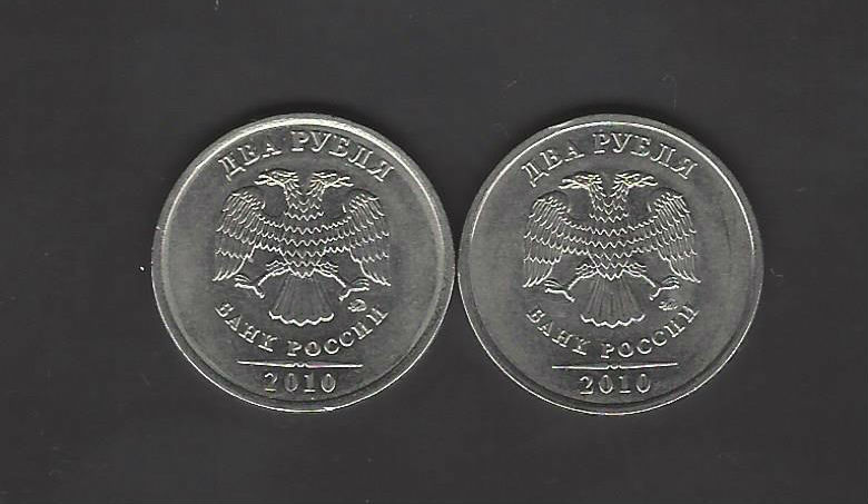 На фото 2 рубля 2010 ММД.шт.4.3А по А.С. Совершенно отчётливо видна разница в размере поля монеты. Слева обычный размер, а справа меньше.