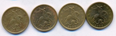 По таким сканам может всё что угодно померещиться. Сделайте сканы с бОльшим разрешением. Одна из монет 2006 СП.